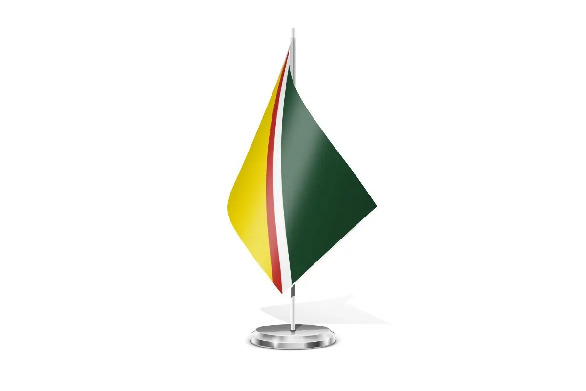 La bandera de mesa está compuesta por tres franjas horizontales de igual tamaño. La franja superior es de color amarillo, la franja central es de color rojo y la franja inferior es de color verde. Estos colores tienen un significado simbólico para la comunidad local.